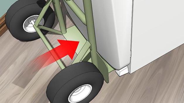 3、小心地傾斜冰箱。當冰箱和手推車綁好后,慢慢地推動手推車,向著卡車的方向前進。你的移動方向必須和冰箱的傾斜方向相反,這樣才安全。這時,你需要一個幫手在另一面指導你通過各種障礙物,并幫助你固定住冰箱。[2]推手推車下臺階的時候,讓你的幫手扶著冰箱,協(xié)助你一級級地往下移動。理想的情況是兩個人站在手推車的前方,第三個人站在后面握住把手,慢慢往下放。三個人之間的配合非常關鍵,所以大家交流時聲音要大,切勿操之過急。
