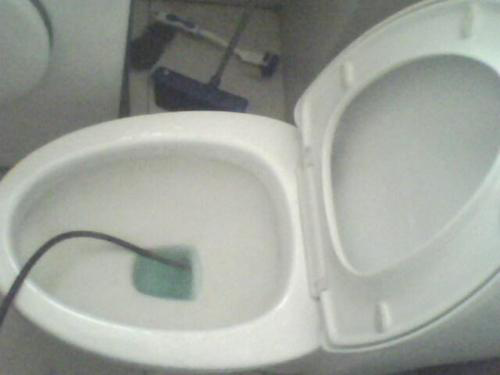 8、假如馬桶被細(xì)沙或很多硬塊堵了,則要用能彎伸進(jìn)到馬桶內(nèi)的不銹鋼絲攪拌,輸通馬桶。
