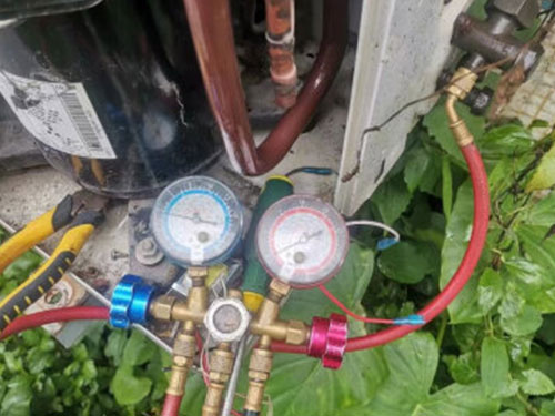 空調(diào)正常啟動后,從室外機(jī)低壓閥側(cè)的工藝口連接加氟設(shè)備 。此過程中一定要排掉加氟管中的空氣和臟物 。