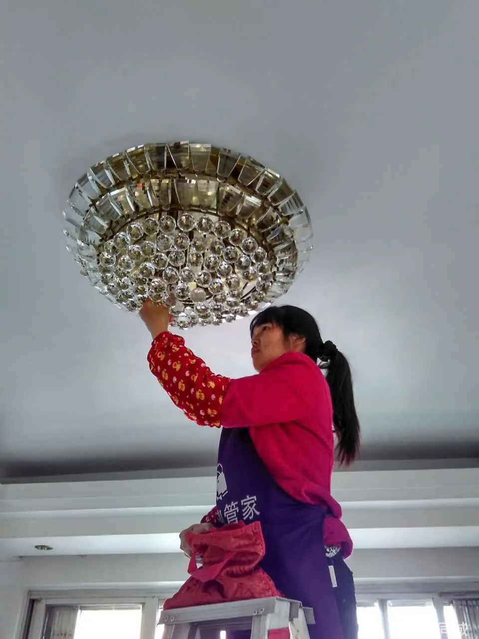 4、大家在清洗水晶燈的過程中,一定要在地上鋪一塊后地毯,一些比較厚的衣服或水晶防墜網(wǎng),防止水晶燈零件的掉落,一旦掉在地上就會碎,破碎的玻璃打掃起來比較麻煩,而且容易傷手。