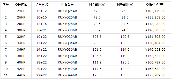 2、VRV X系列雙模塊室外機價格表