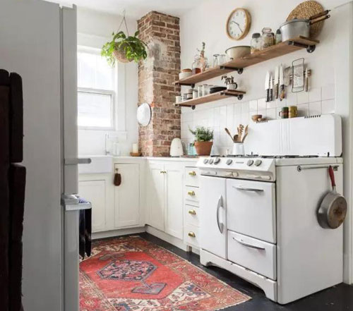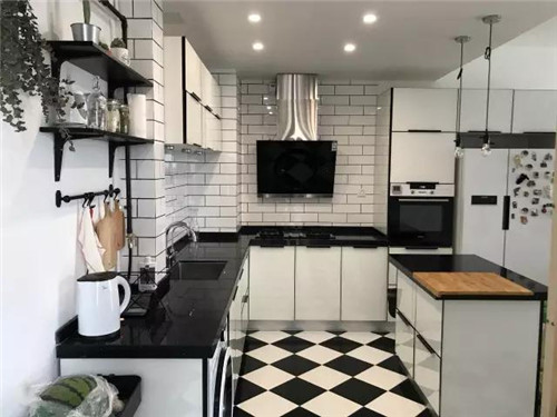 另外,為使廚房風格統(tǒng)一,有些業(yè)主很喜歡在*吸式抽油煙機外部做吊柜將其包起來。就像這樣↓