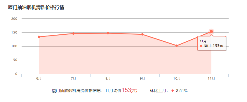 在廈門找人清洗一臺(tái)油煙機(jī)的費(fèi)用一般在100-300元左右,實(shí)際的費(fèi)用與油煙機(jī)的規(guī)格和清洗難度有關(guān),需要根據(jù)情況具體報(bào)價(jià),下面是這幾個(gè)月廈門清洗油煙機(jī)的價(jià)格波動(dòng)表,可供參考: