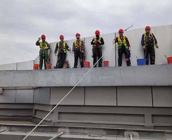 4、工作人員要帶上工具,爬上吊籃或者吊板,而一些工具要隨身攜帶, 同時(shí)要做好人身的安全措施,防止從高空墜落,還要在比較醒目的地方安裝警示牌,并在高空作業(yè)現(xiàn)場(chǎng)設(shè)安全員,對(duì)作業(yè)設(shè)施進(jìn)行安全檢查,排除隱患。
