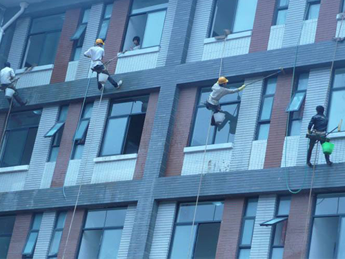 外墻清洗分為吊板方式和擦窗方式。吊板方式是用吊繩、吊板將人吊到工作位置進(jìn)行清洗。這種型式比較簡(jiǎn)單,成本也低,只要工人身體素質(zhì)好、繩子連接牢固就可以進(jìn)行。一般的大樓都可以用這種方式進(jìn)行清洗,但是這種方式的操作必須使安全措施到位,否則危險(xiǎn)性很大,造成傷亡事故的都是因安全措施不到位造成的。外墻清洗包括很多種,例如外墻玻璃幕墻清洗、外墻玻璃窗清洗、外墻石材墻面清洗、外墻涂料墻面清洗、外墻瓷磚墻面清洗、外墻條磚清洗、陽光棚外墻清洗、鋁塑板墻面清洗,特種清洗。