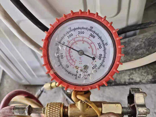 測壓力法:將空調(diào)置于制冷高速風(fēng)狀態(tài)(冬天,制熱需要加氟時(shí),將空調(diào)設(shè)置于強(qiáng)制制冷狀態(tài)或?qū)⑹覝貍鞲衅髦糜?7℃左右的溫水中,模擬夏天溫度讓空調(diào)處于制冷狀態(tài))下運(yùn)轉(zhuǎn),在低壓截止閥工藝口,邊加氟邊觀察真空壓力表的低壓壓力,當(dāng)?shù)蛪涸?.49mpa(夏天)或0.25mpa(冬天),關(guān)閉氟瓶閥門