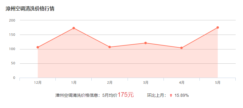在漳州清洗空調(diào)的收費(fèi)標(biāo)準(zhǔn)一般在60-300元左右,具體的費(fèi)用與空調(diào)的類型和型號(hào)有關(guān),具體有師傅了解報(bào)價(jià)!下面為漳州近幾個(gè)月的價(jià)格波動(dòng)圖,可供參考: