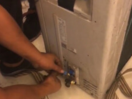 通電前位查一下電壓,再用遙控器啟動運(yùn)行。室外機(jī)工作以后,檢查運(yùn)行電流是否與銘牌標(biāo)注相一致,如小于銘牌標(biāo)注的電流可視為氟利昂量少,不急于加氟,可繼續(xù)觀察管道接頭處的結(jié)露或結(jié)霜情況。