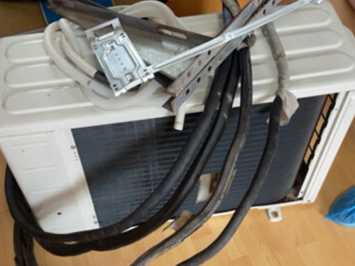 2、拆開室外機(jī)銅管接頭(塑料布包好,防止進(jìn)土),拆開室外機(jī)電線接頭(記住線的順序)。